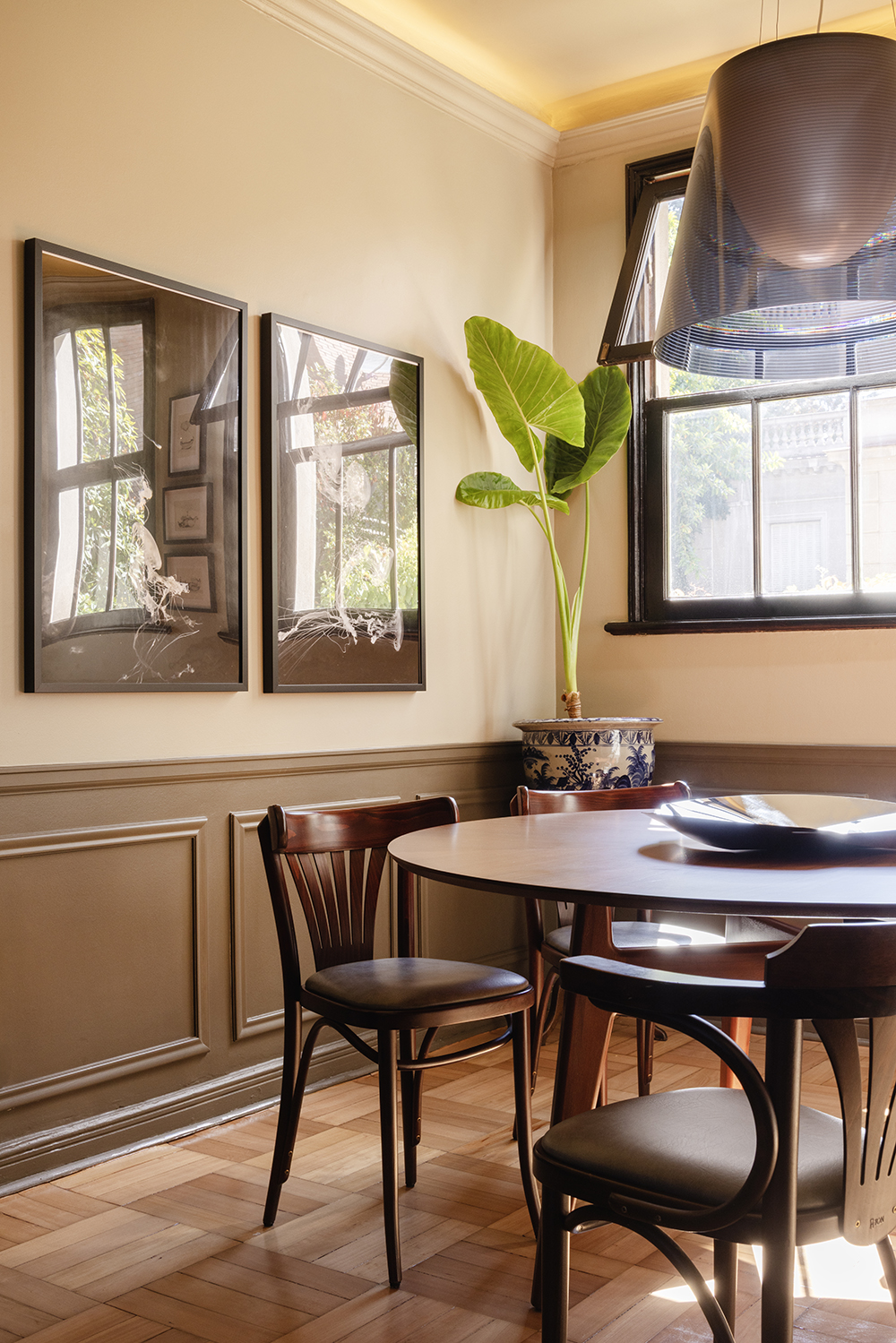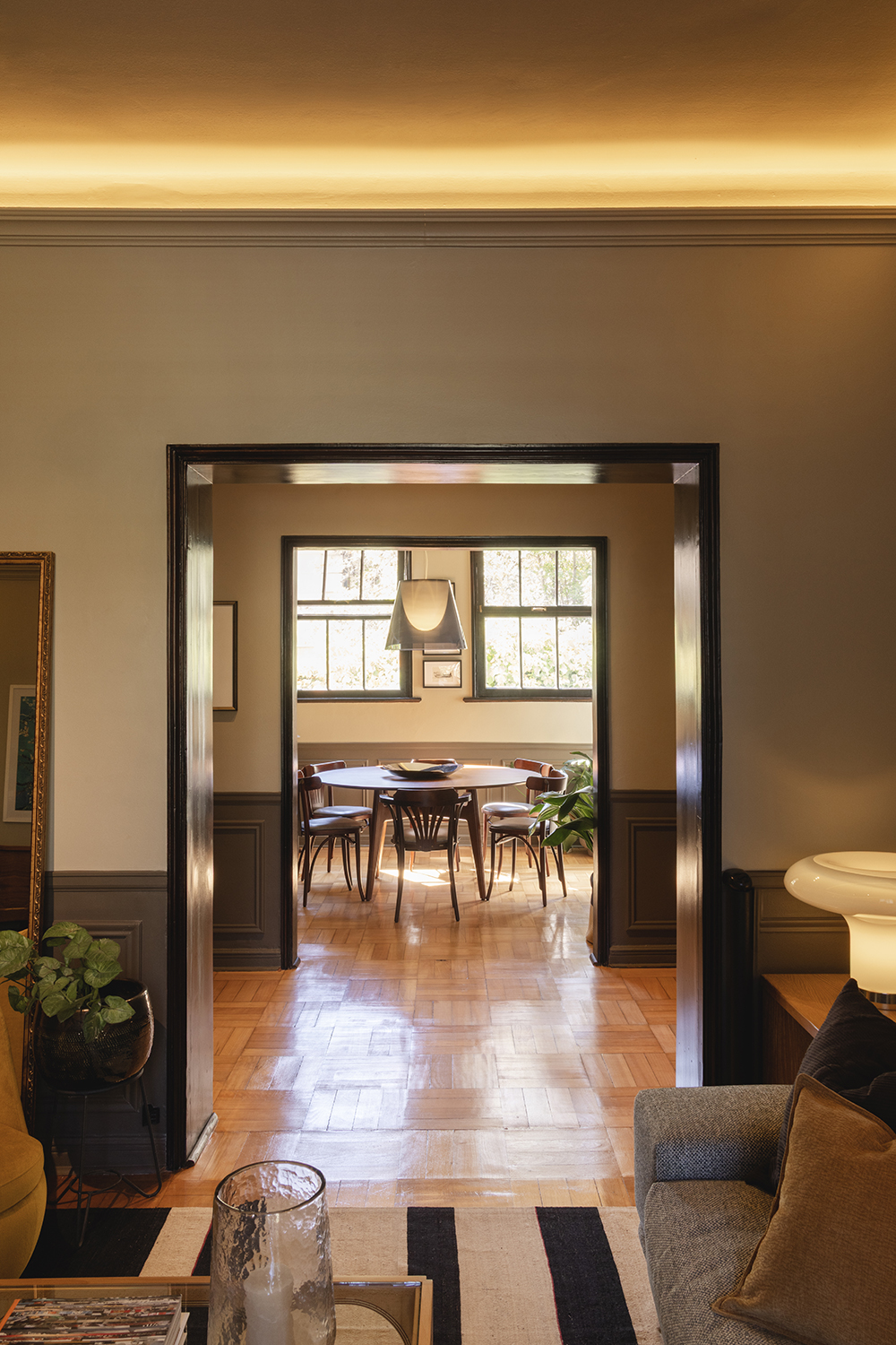El proyecto se construye a partir de una lectura fluida entre espacios, donde las visuales enmarcadas y la repetición de molduras generan ritmo y coherencia. La luz —natural y artificial— acentúa las texturas y define atmósferas más que iluminar.